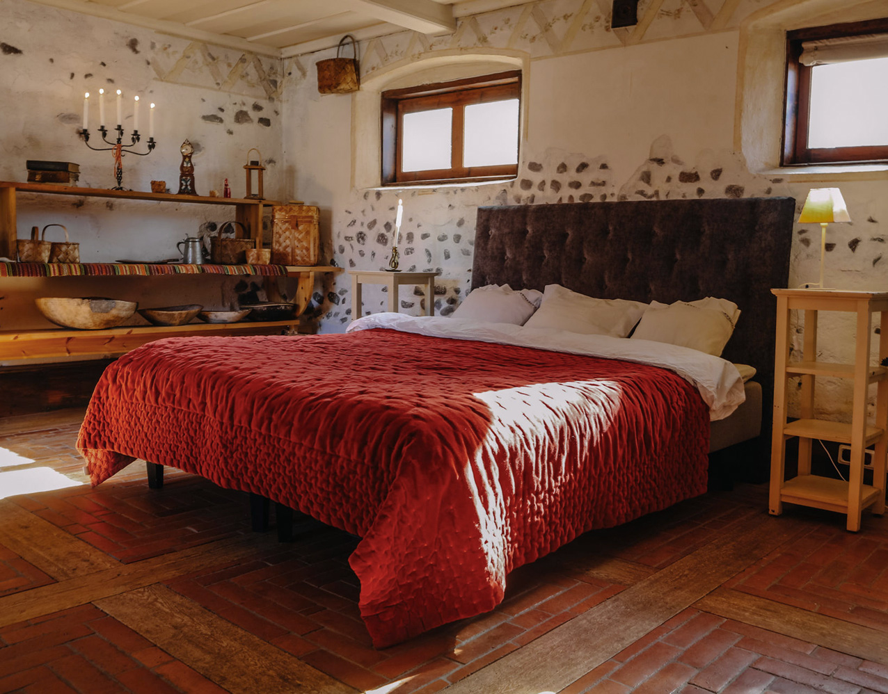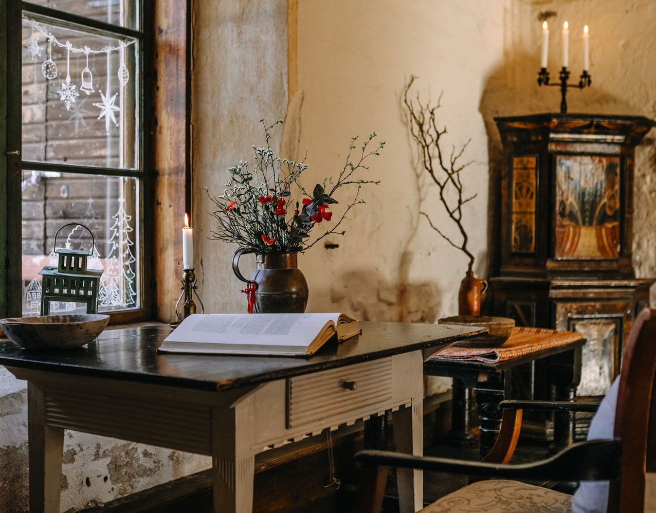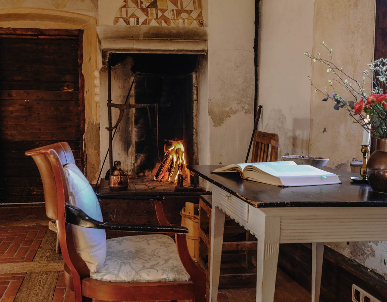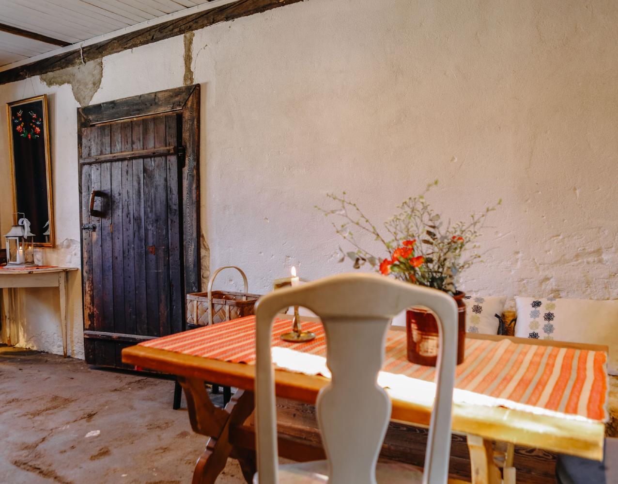 I ladugården har vi 2 st 90 cm breda sängar som enkelt kan göras om till dubbelsäng, det finns även möjlighet att sätta in en barnsäng. Rummet är som en separat lägenhet på gårdsplan en och är inte sammankopplad med huvudbyggnaden. Själva lägenheten består av ett sovrum, ett eget fullt utrustat kök med matbord och badrum med dusch, toalett, handdukstork och handfat. I sovrummet har du även en otrolig öppen spis så du kan somna till ljudet av den sprakande elden.
