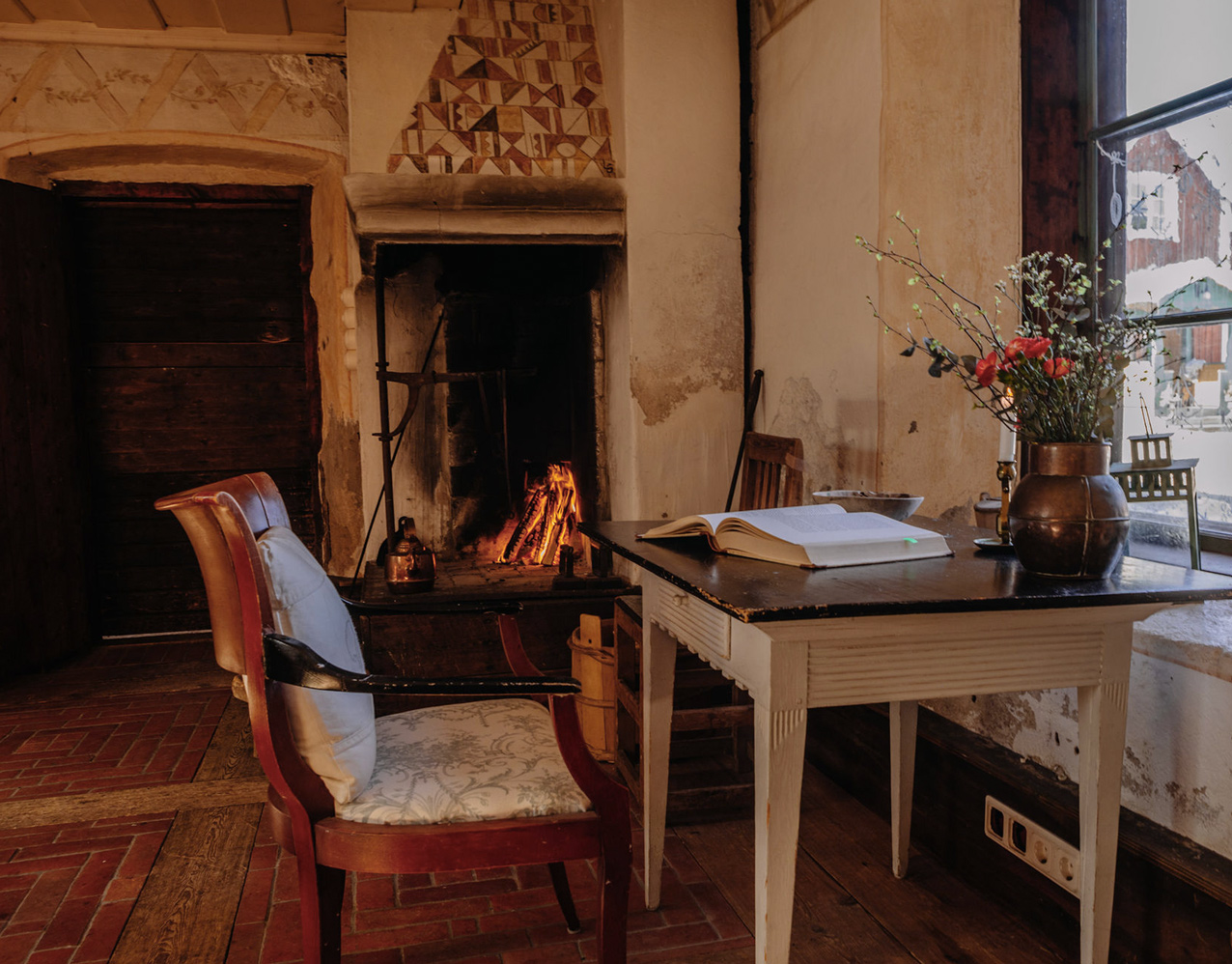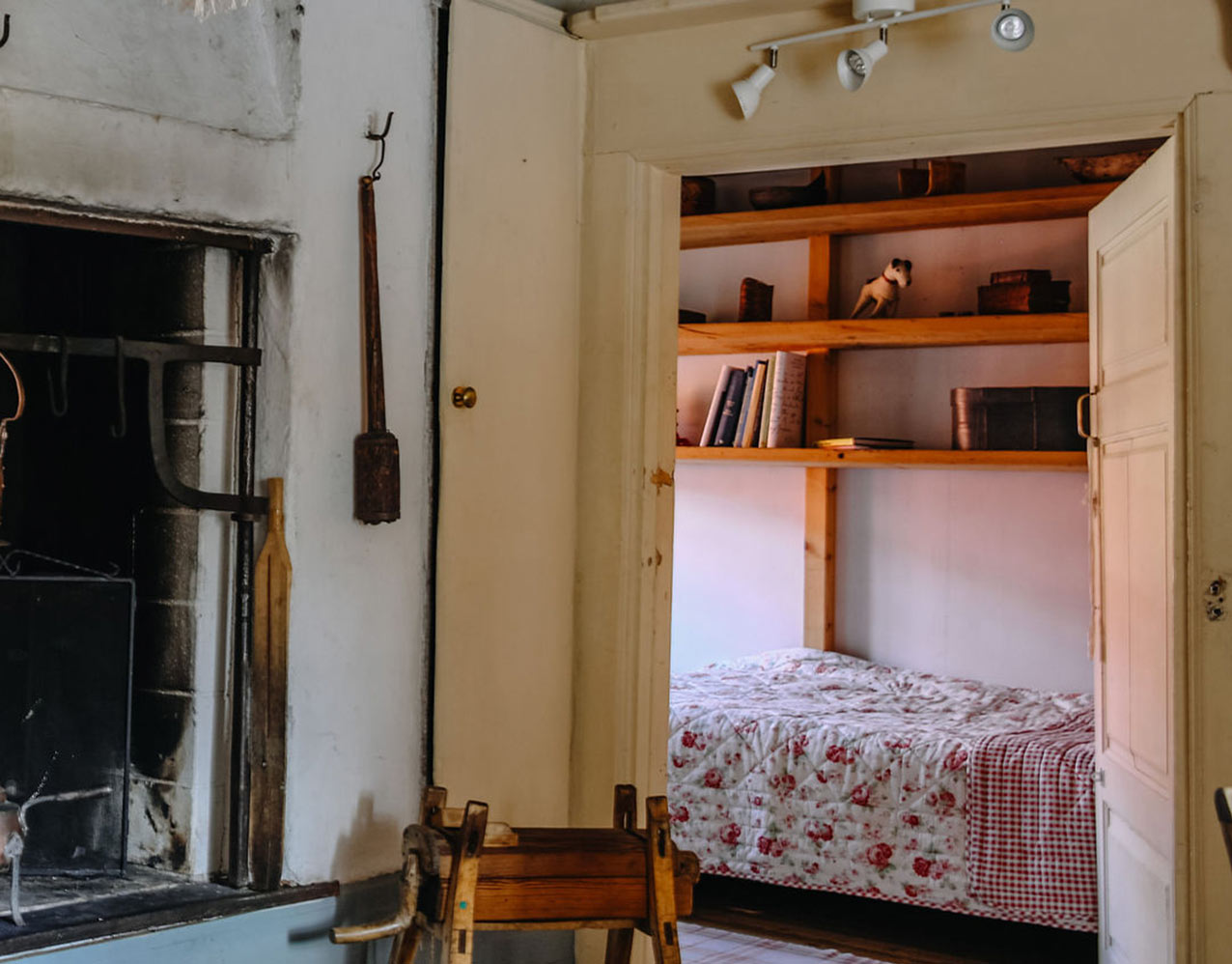 Pigkammaren är ett litet litet rum i Gammelstugan med en dörr som går att stänga. I rummet finns ett fönster som...