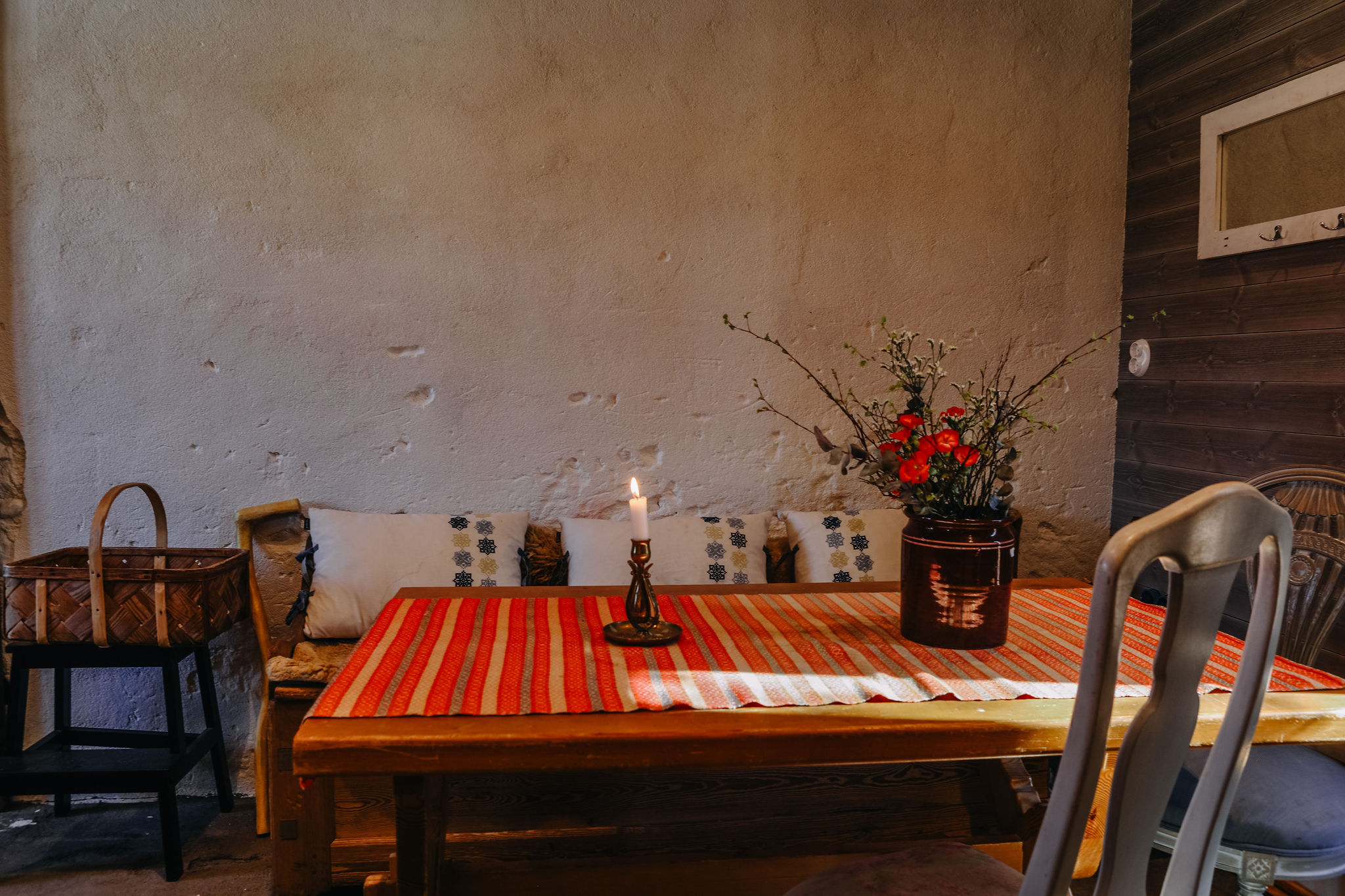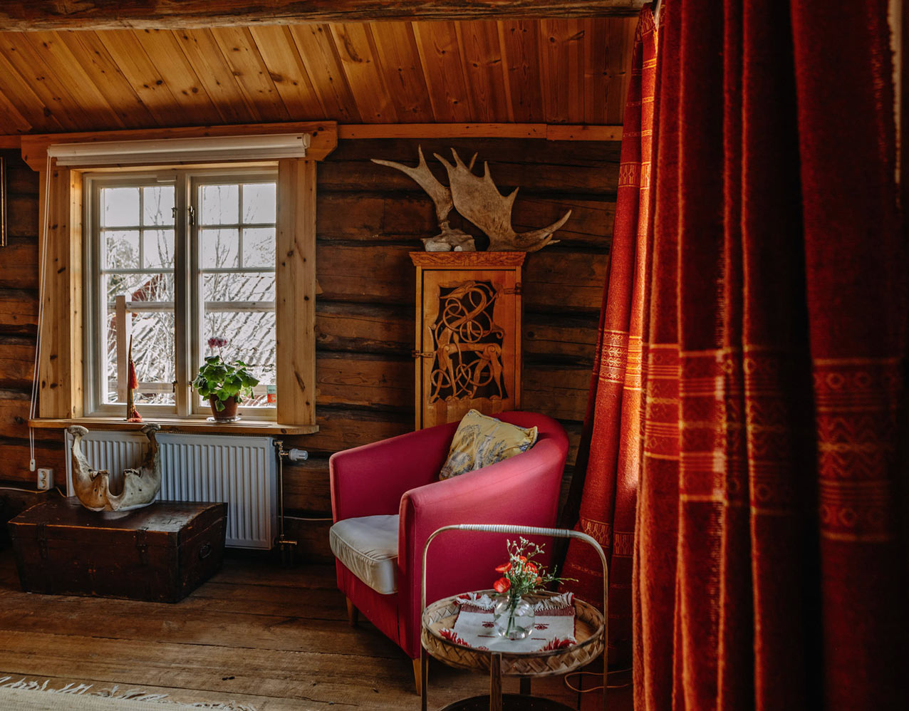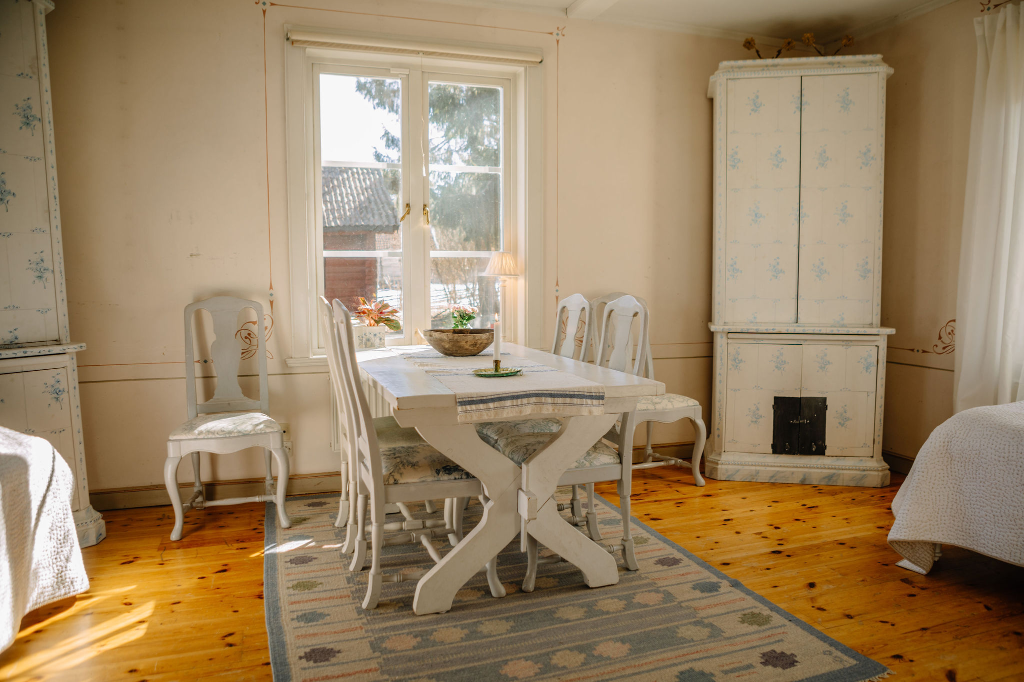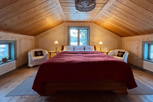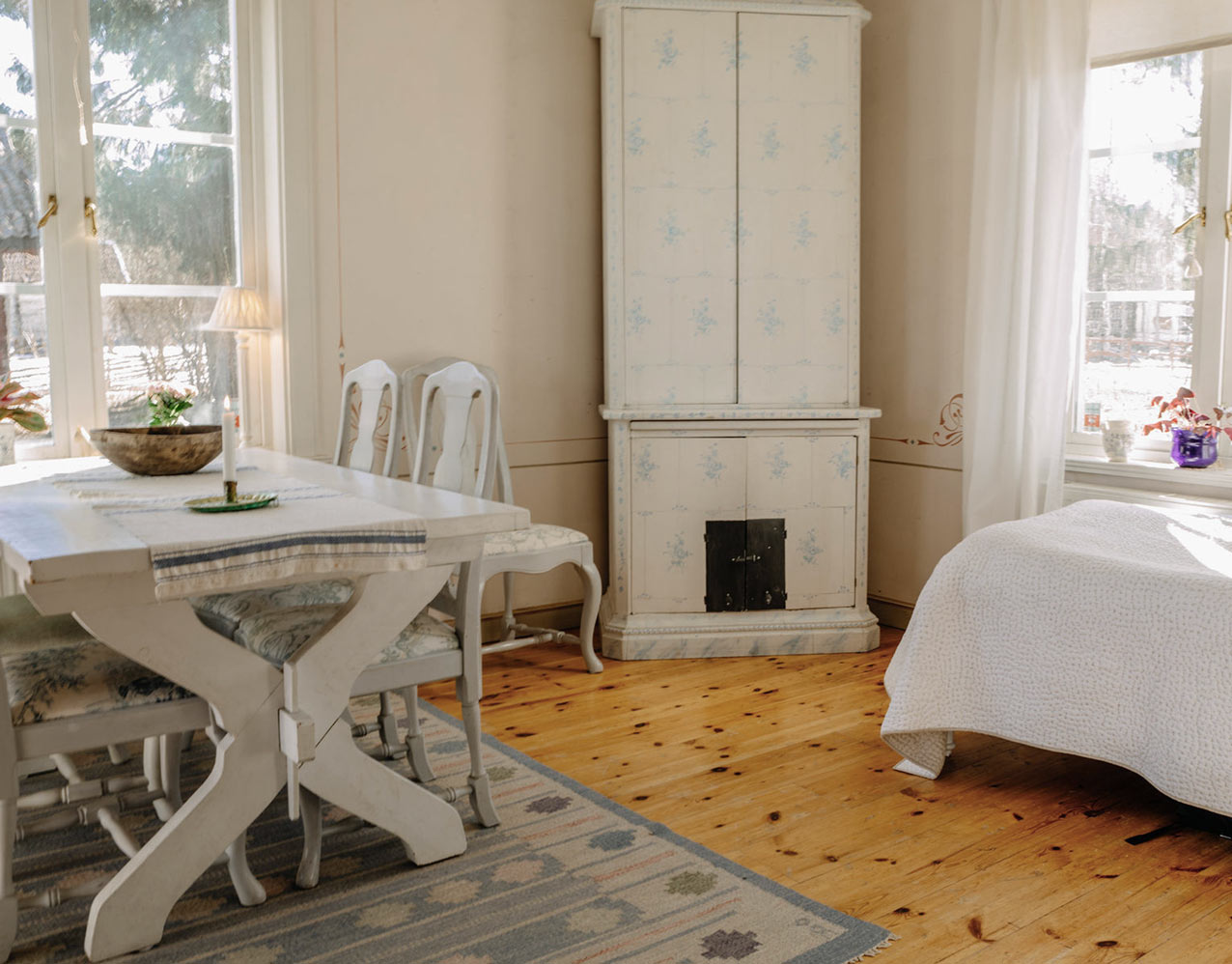 Sviten är det första sovrummet som blev klart vid renoveringens start år 2001. Grano Lars, byns duktiga konstnär och bygdemålare, har...