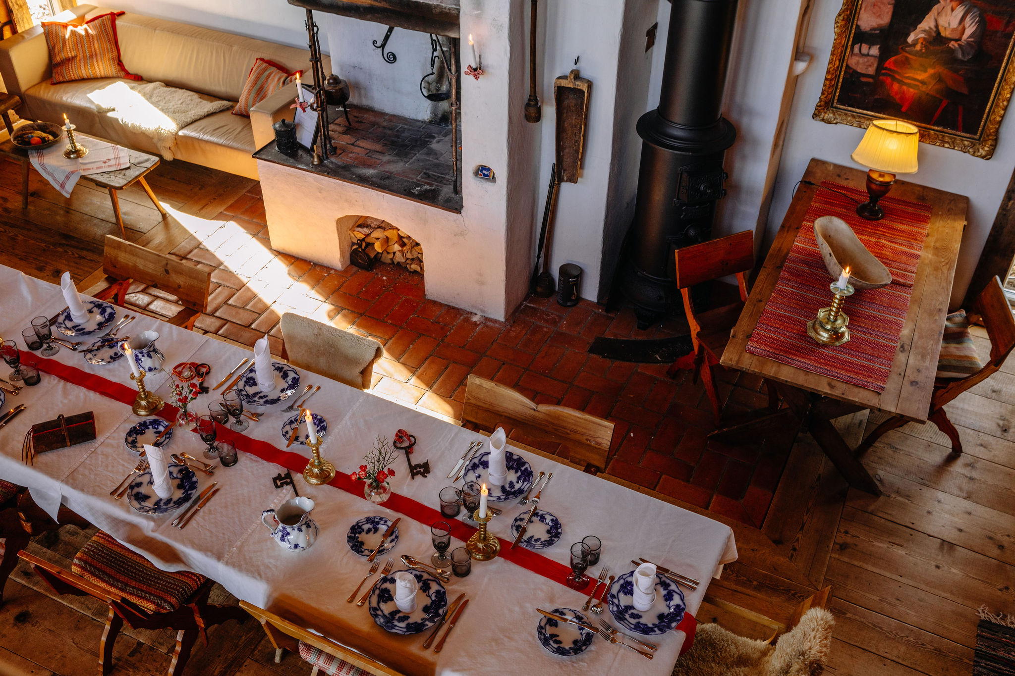 Myrängsgården består av fem ihopbyggda timmerhus. En klassisk kringbyggd dalagård. Mellan alla husen har vi skapat en ca 14 meter lång matsal i gammal stil.