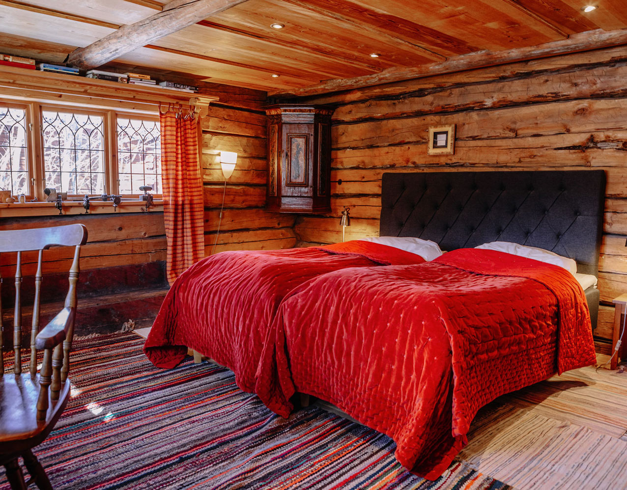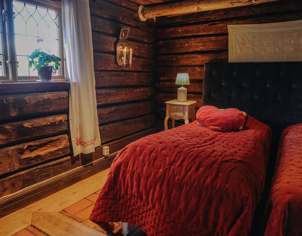 Det äldsta huset är daterat från 1729. Varje rum har ett namn som beskriver dess karaktär. Vi har 9 generösa rum där du kan stänga dörren. Merparten av rummen har egen toalett och handfat. De flesta rum är dubbelrum med klassiska genuina ramsängar, i flera rum har vi Hästens sängar. Vi har totalt 25 sängar på anläggningen.